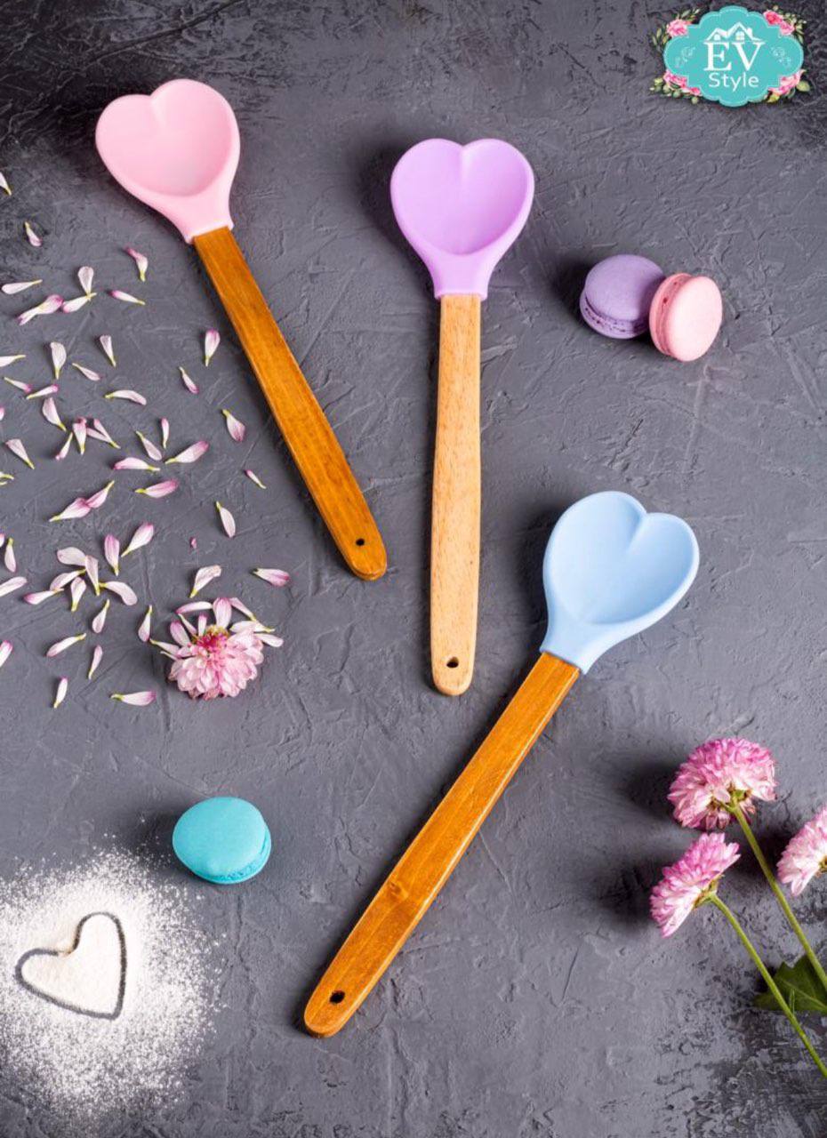کفگير سيليکوني دسته چوبي قلب